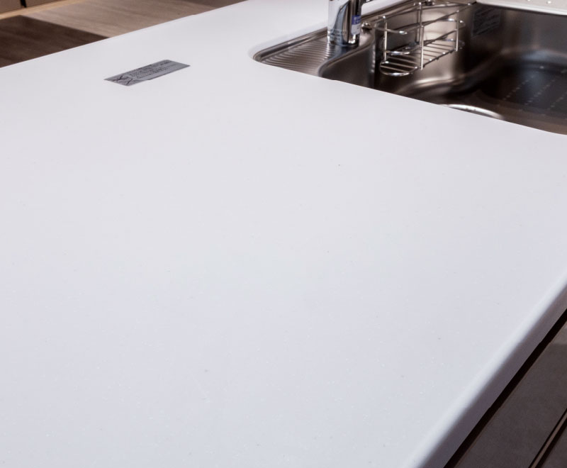 スッキリとした見た目でリビング家具との相性もよく、キッチンがより周囲のインテリアに溶け込みやすいデザインとなっております。