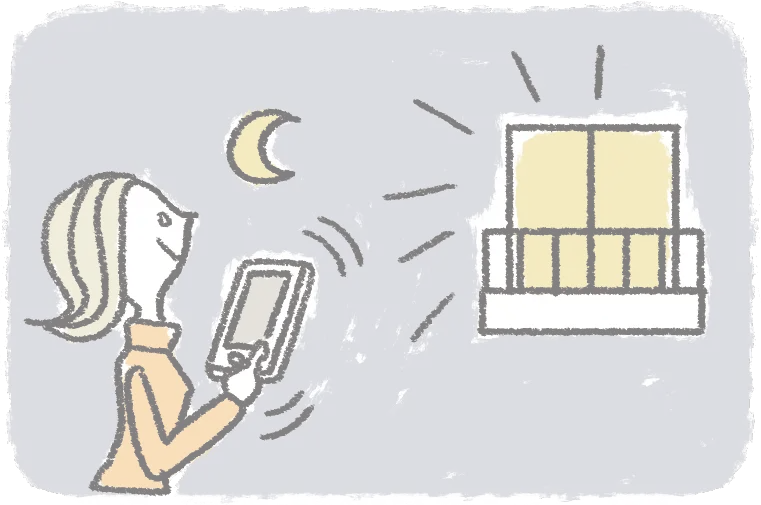 外出先からスマホを使って、照明を予め点けることができます。帰宅時間を外から分からなくすることで、防犯対策になります。