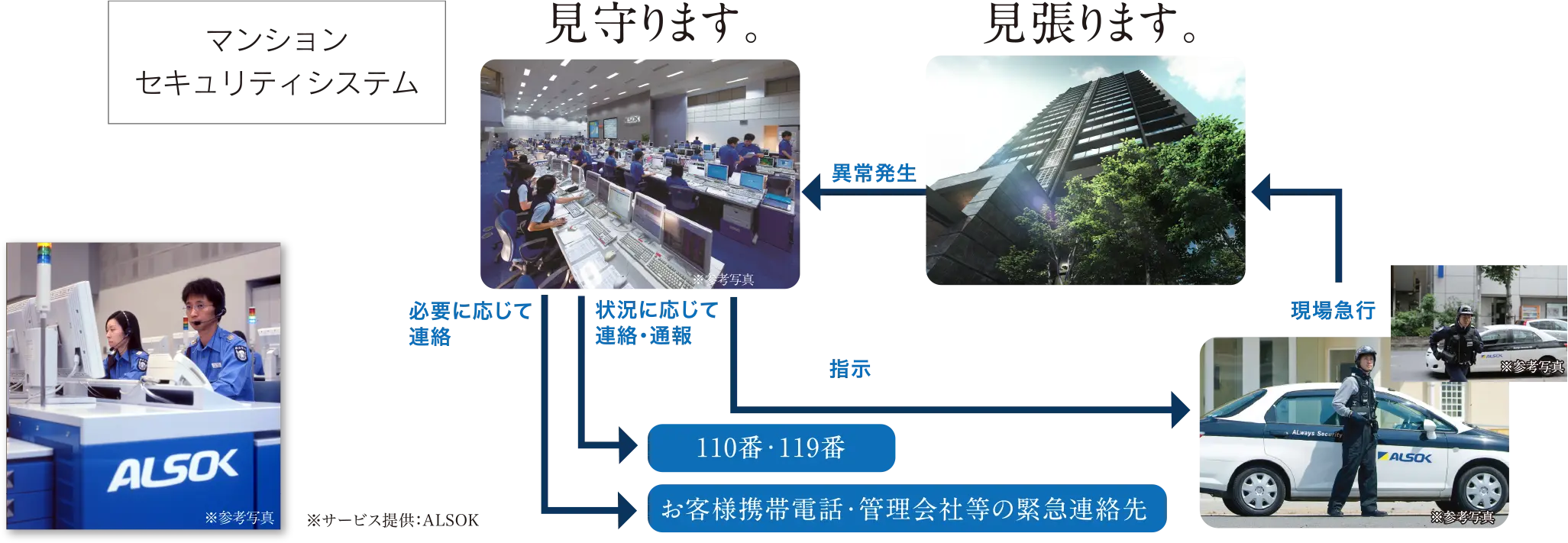 安全のプロであるALSOKのガードマンが、昼夜休日を問わず、迅速に駆けつけます。
