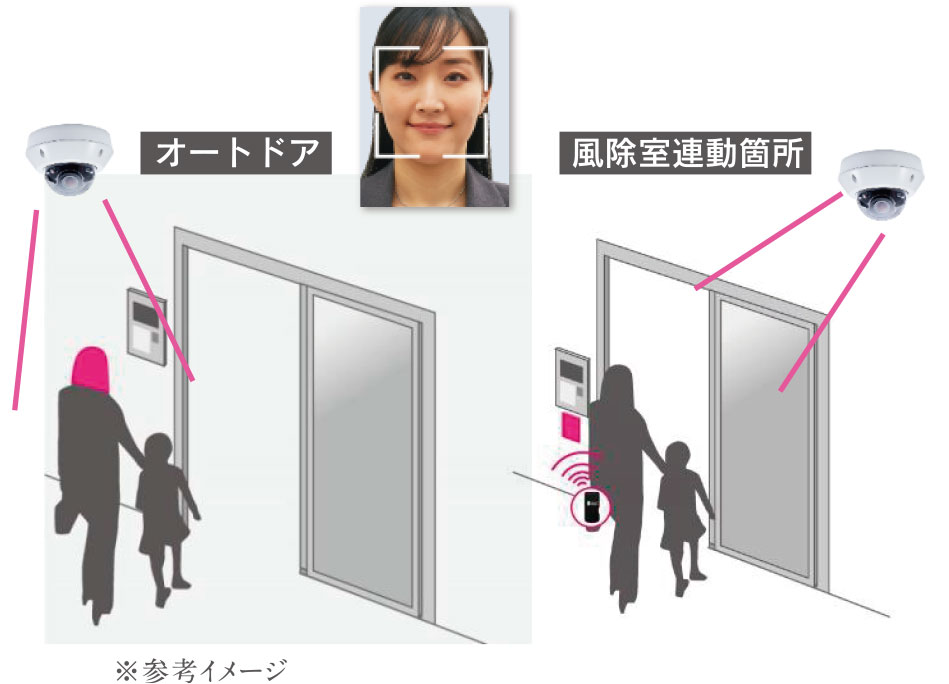 (人感センサ検知距離/約2m)(認証範囲/約2m)Tebra passリーダの前を横切ると人感センサが検知します。