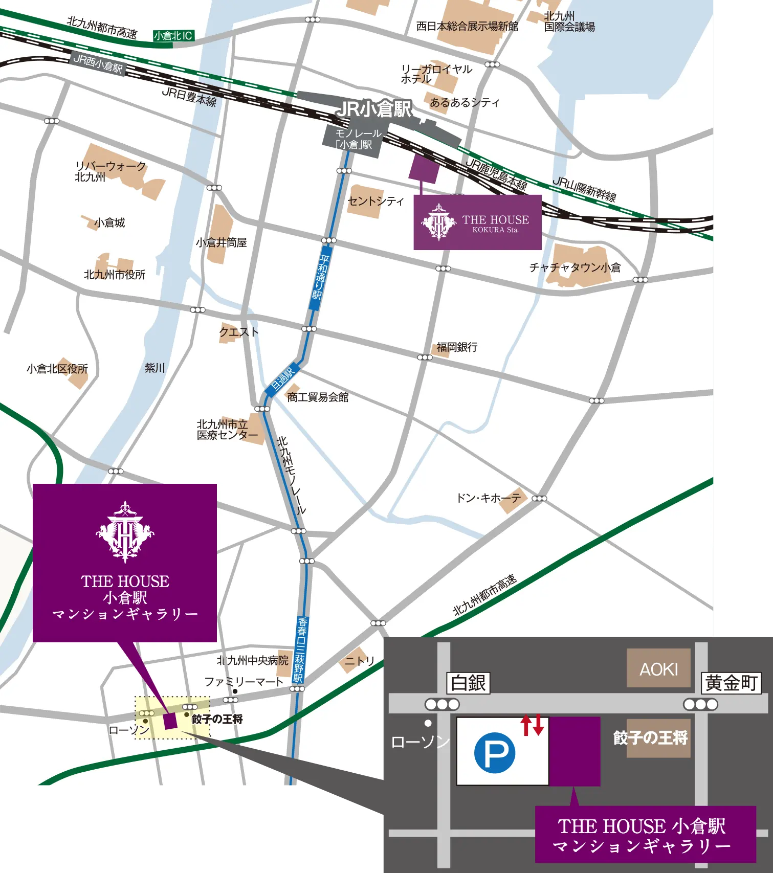 THE HOUSE 小倉駅 マンションギャラリーにお越しの際は、隣の「白銀中央有料駐車場」をご利用下さい。(北九州市小倉北区白銀1丁目)