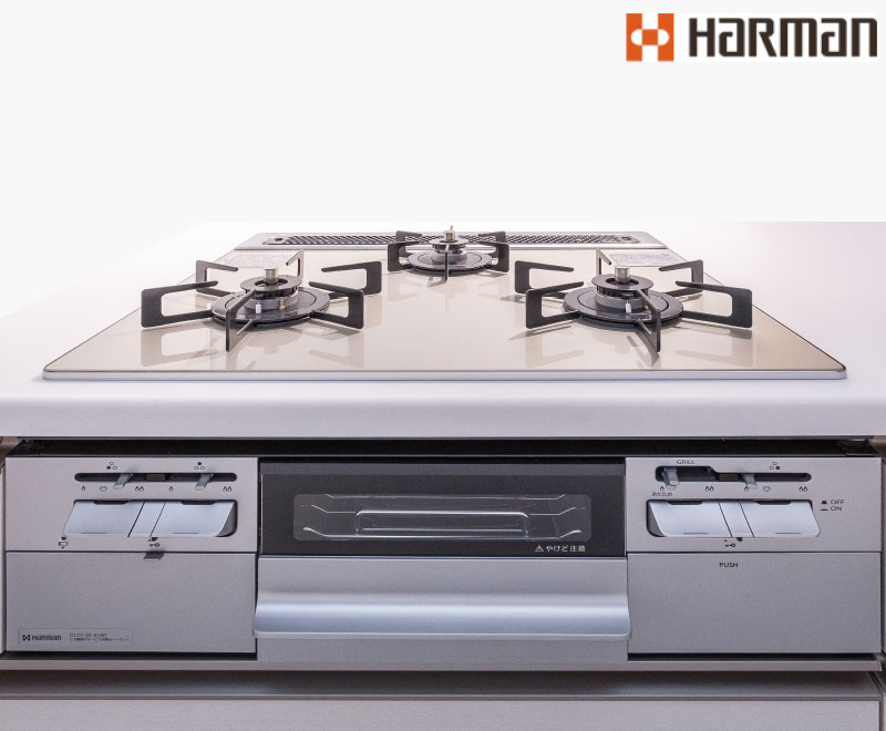 シンプルで使いやすく、美しいデザインと省エネ性能が高いバーナーの搭載で熱効率向上と焼きムラ低減を実現。バーナー間の寸法が広がり同時調理も快適に!