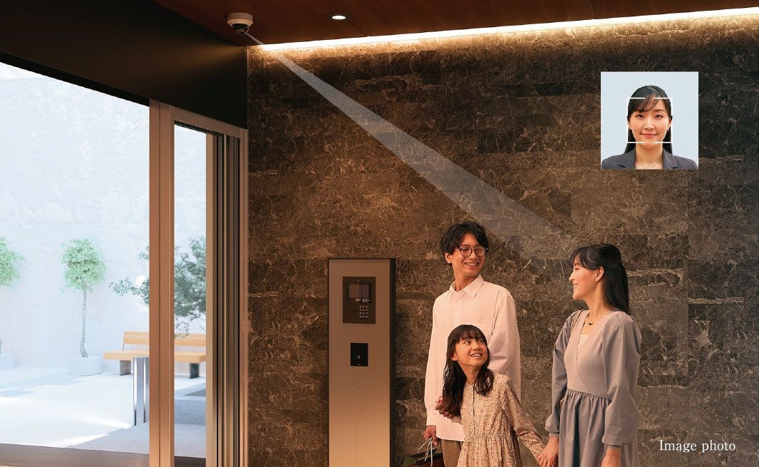 いたずらや犯罪を抑止するために、駐車場、エントランスホール、エレベーターなどに監視カメラを設置。1階エントランスにあるモニターでの確認や管理室でも確認可能となっています。