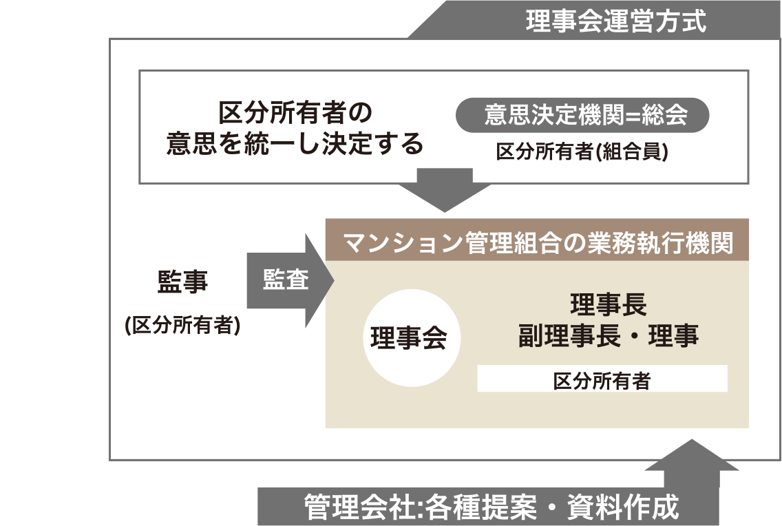 管理組合の運営はとても大切なことです。ただ土日に開催されることが多い理事会に参加するのは、負担が大きいというお声も数多くあるのも事実。そこで、理事会の議題検討や運営を第三者に委託できる仕組みを導入しました。煩わしい管理のことはプロにお任せください。