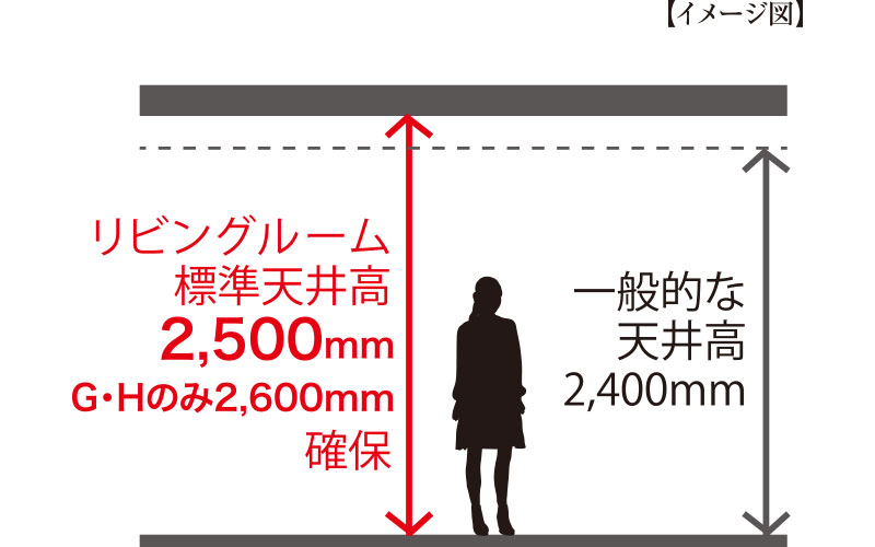 天井が高いと視界が広がり開放感がアップするので、のびやかな室内空間でゆとりある毎日が実現します。