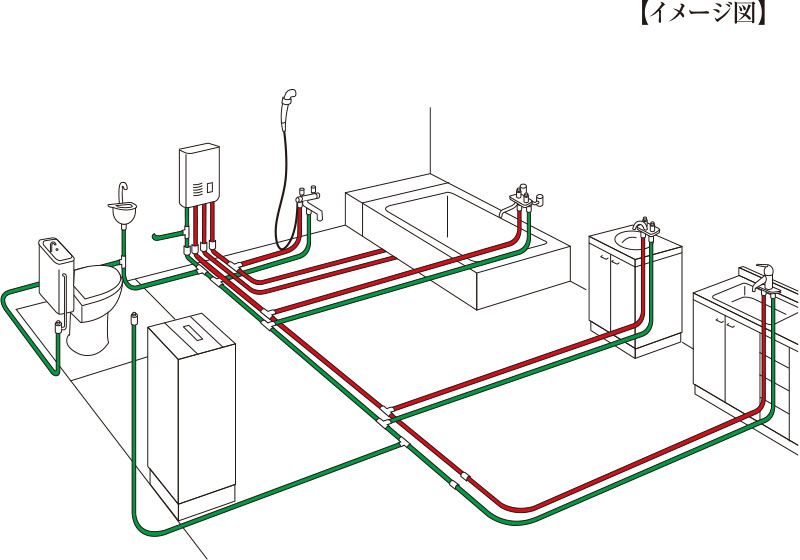 錆が発生しない樹脂管と、樹脂管用の継手を採用した分岐工法により、抜群の耐久性を実現。品質性と安全性、どちらも信頼できる配管システムです。